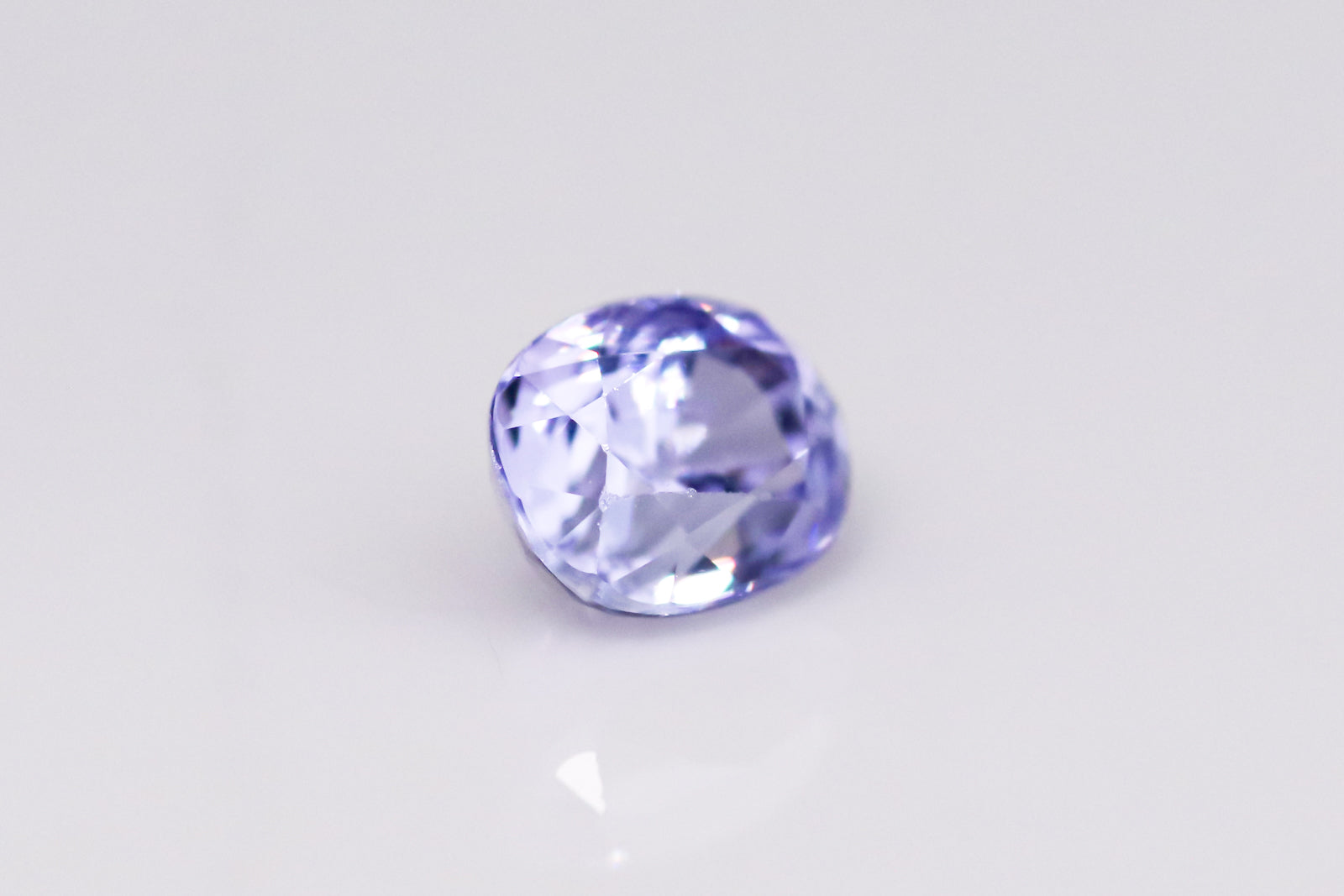 タンザナイト特有の多色性によって、角度を変えるたびにブルーからバイオレットへと微妙に揺らぐ色のグラデーション。