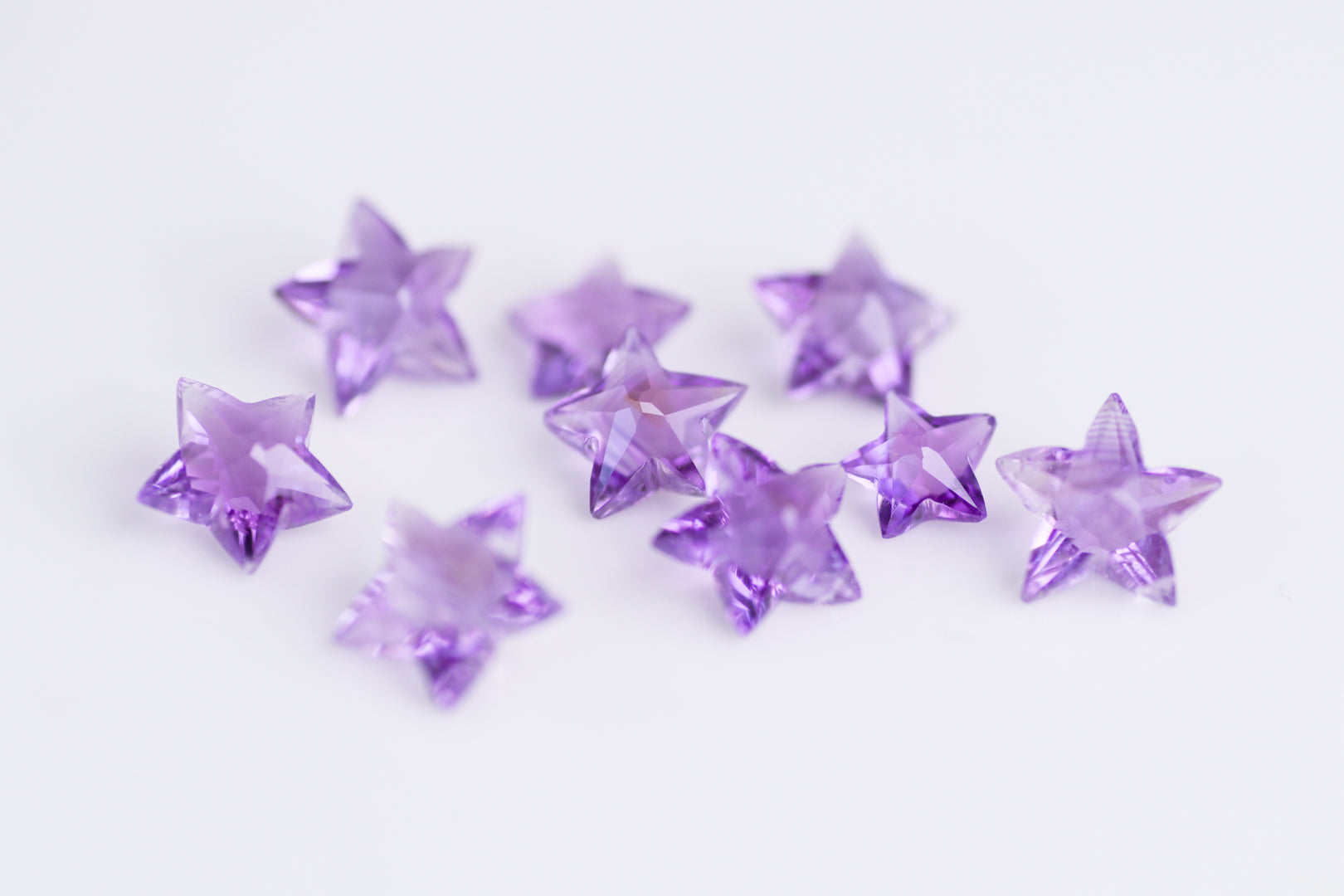 金平糖のようにぷっくり可愛い、スターカットのアメシスト。それぞれに個性があり、深く澄んだ紫色が魅力。遊び心もあって、ジュエリーにすれば存在感抜群!
