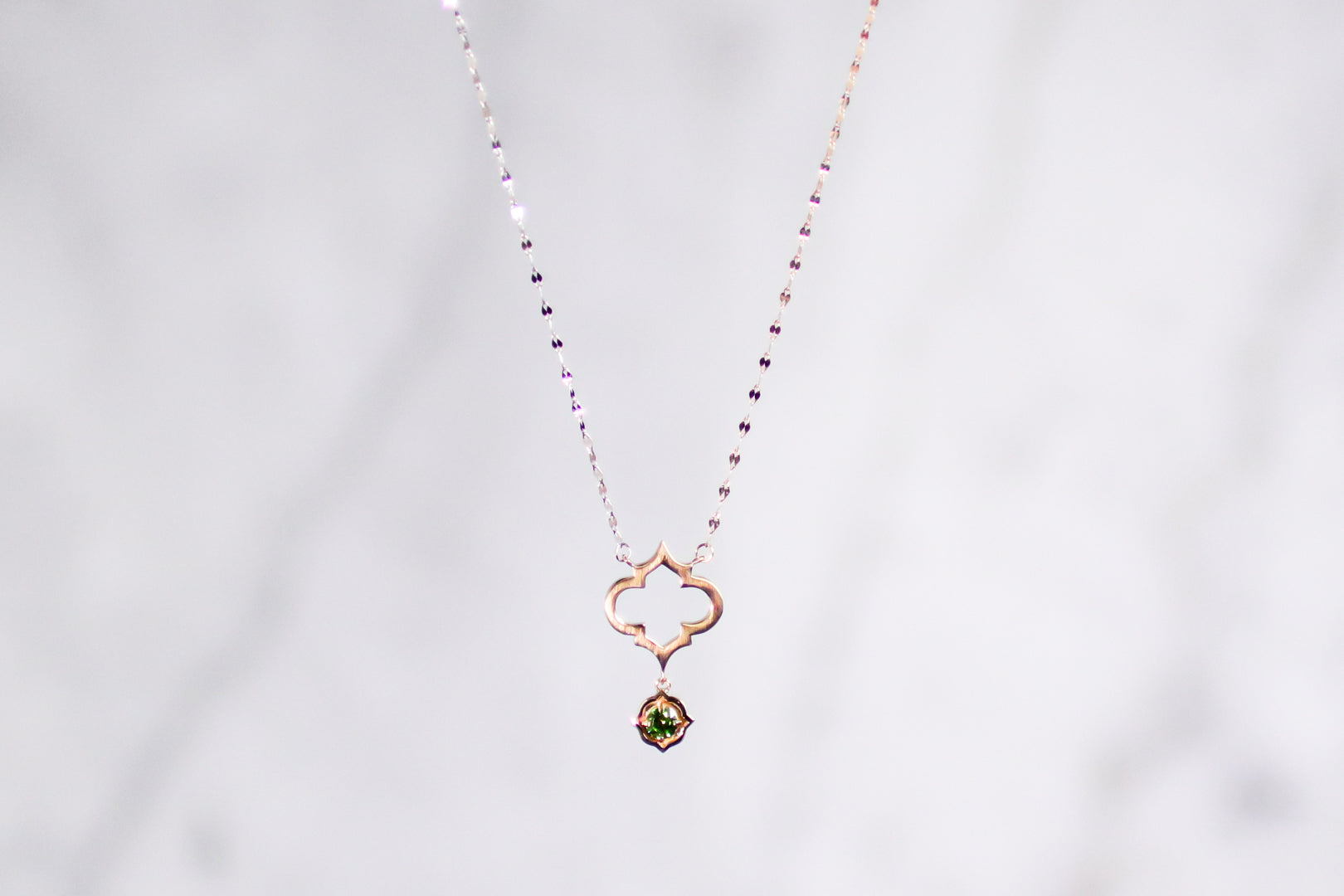 はじめてのTripは「モロッコ」。多種多様な文化と豊かな自然が混ざり合った魅力的な国をイメージし、強い煌めきと美しいグリーンの中にオレンジや黄色が輝くデマントイドガーネットを。