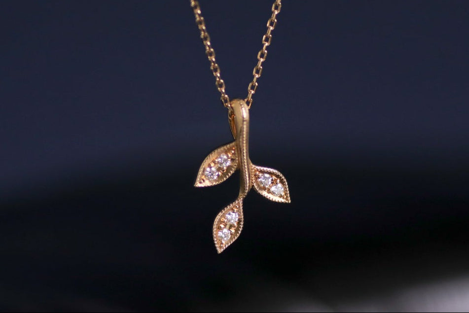 瑞々しい葉にはダイヤモンドの雫が輝き繊細なミルグレインが華やかさを添えます。