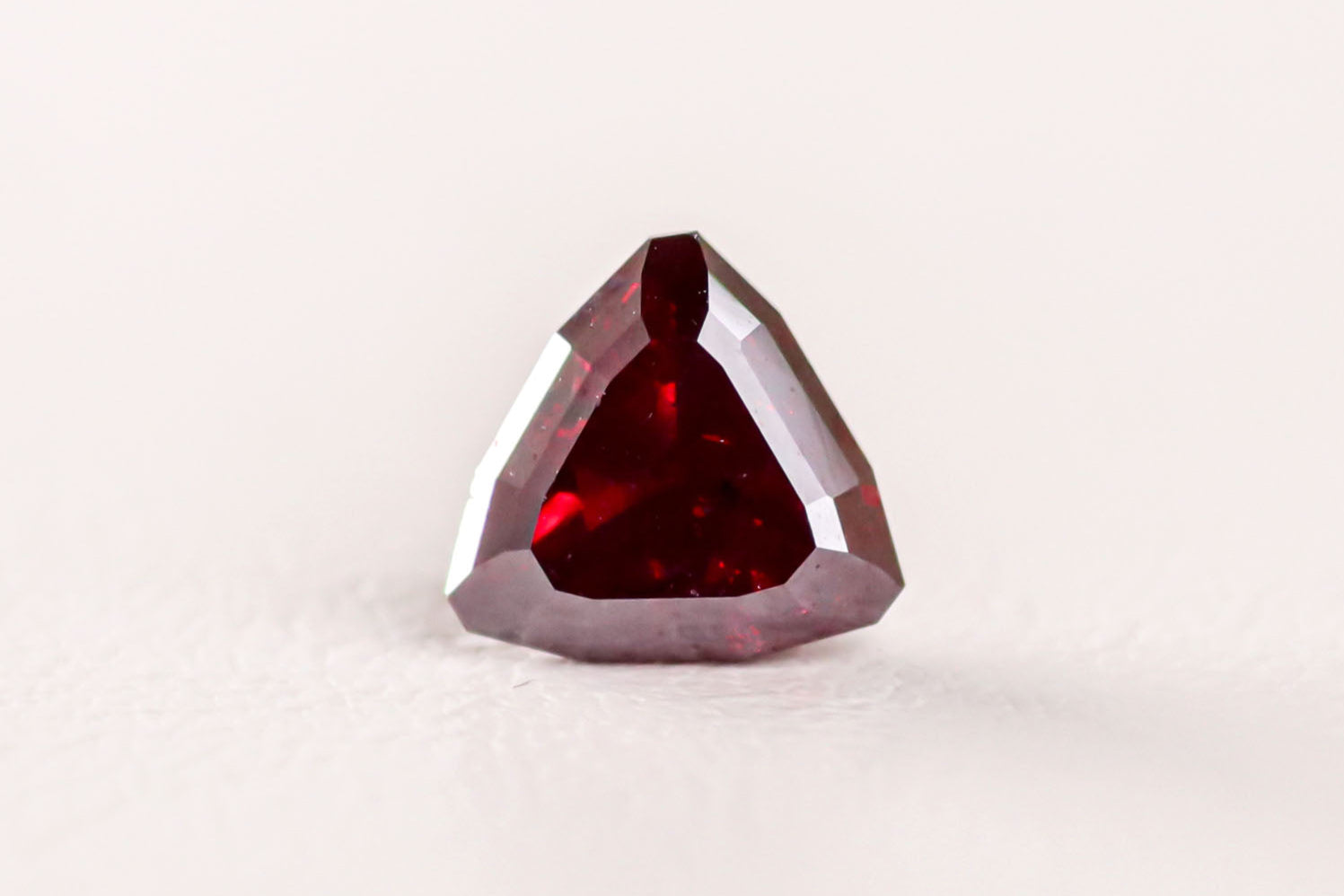 光を当てると深い赤色が浮かぶトリリアントカットのキュプライト。