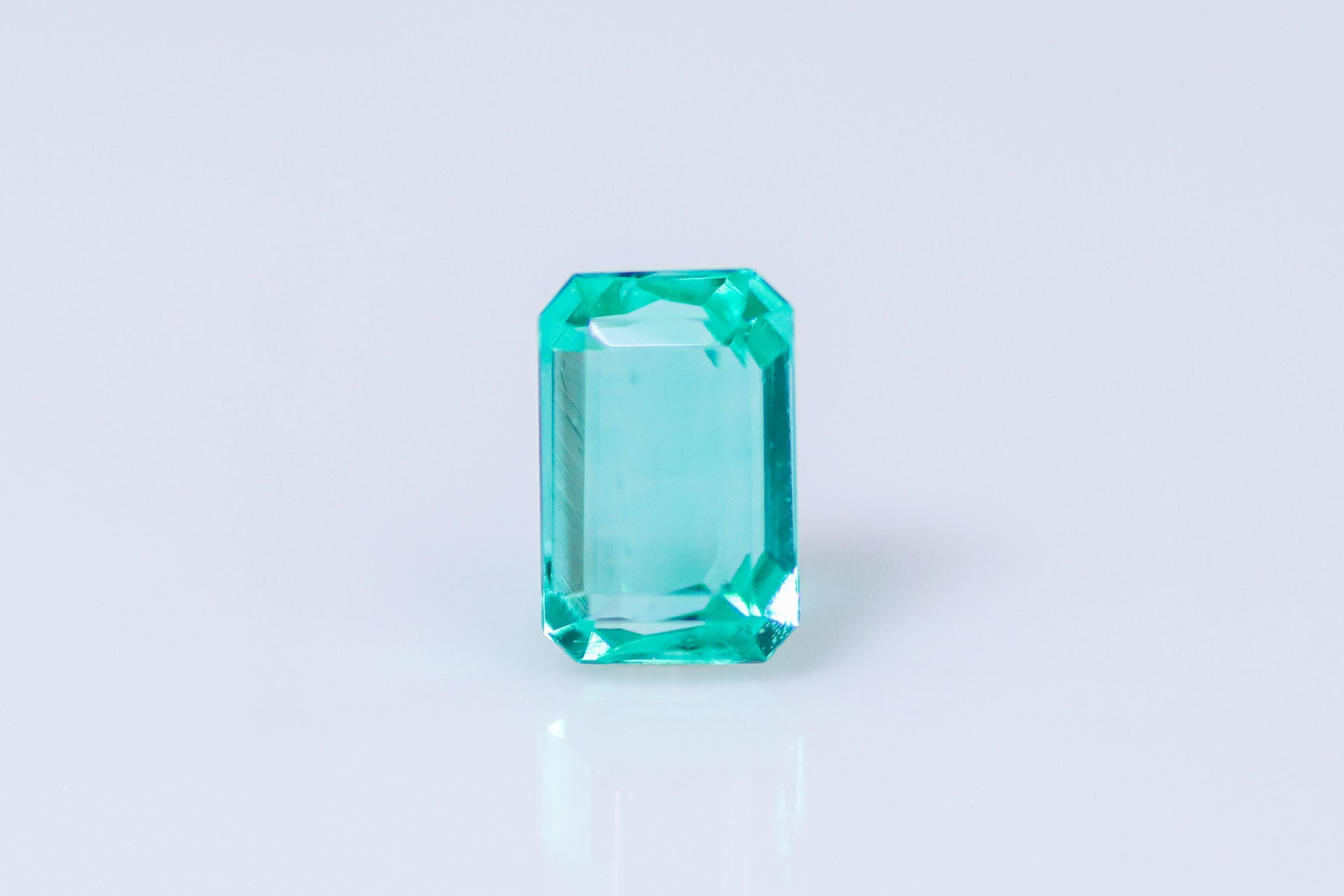 カット | 色の美しさを引き出すにふさわしい、エメラルドならではの正八角形です。研磨も状態、シンメトリーバランスも良く高品質なジュエリー製作を意図したきちんとした印象を受けるカットクオリティと言えます。 |