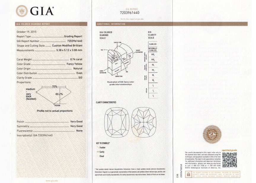 天然ファンシーイエロー ダイヤモンド 0.740ct