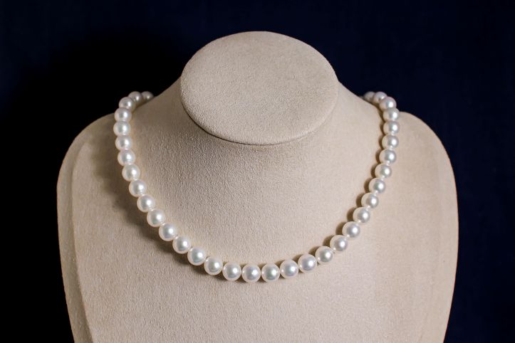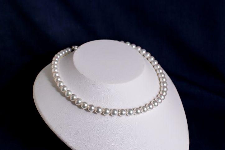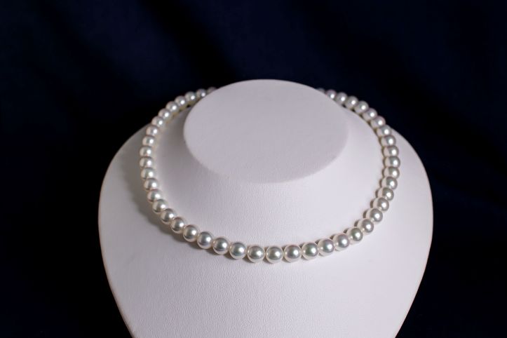 珠ひとつひとつの印象も整っており、ネックレスとして並んだときのまとまりの良さが魅力です。真珠は同じ「白」に見えても、揃い方ひとつで全体の上質感が大きく変わります。こちらはその点でも安心感があり、きちんとした席に迷わず選べる仕上がり。さらに、目立ったキズもほとんど見られず、クオリティの高さは手にした瞬間に伝わります。「生涯身につけられる真珠を選びたい」という方に、自信を持っておすすめできます。