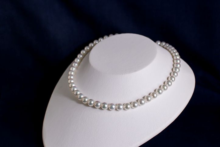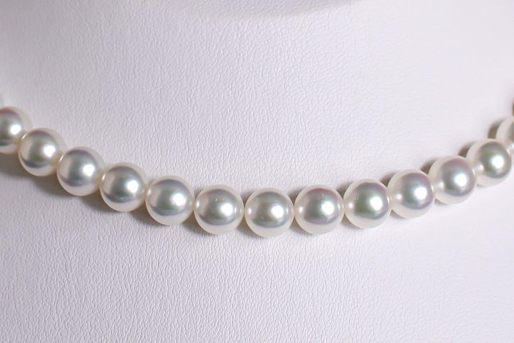 近年、高品質な大粒サイズのアコヤ養殖真珠は生産現場でも減産傾向が続き、こちらのようなクラスは今後ますます出会いにくくなると実感しています。だからこそ、良いものを探している方には、ぜひこの機会に手にしていただきたい一本です。同等の品質で見比べたとき、価格面でも自信を持ってご紹介できるバランスに整っています。
