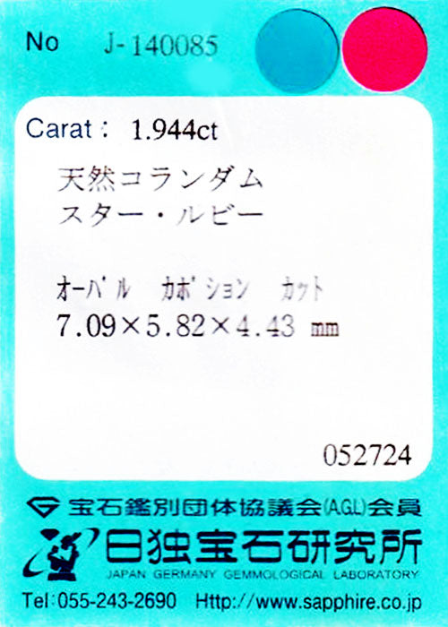 天然スタールビー 1.944ct [ミャンマー産/非加熱]
