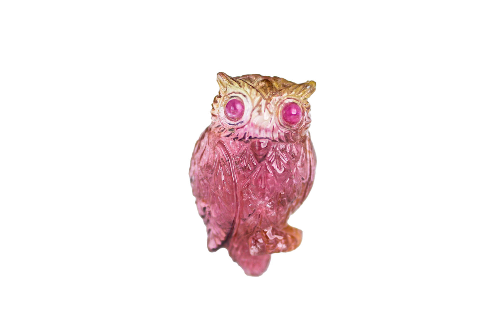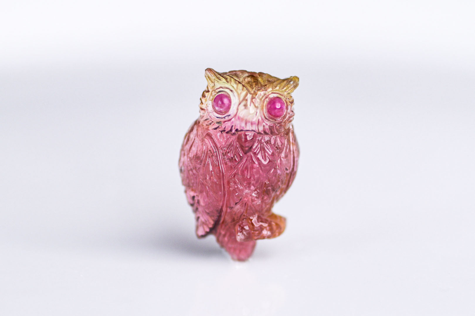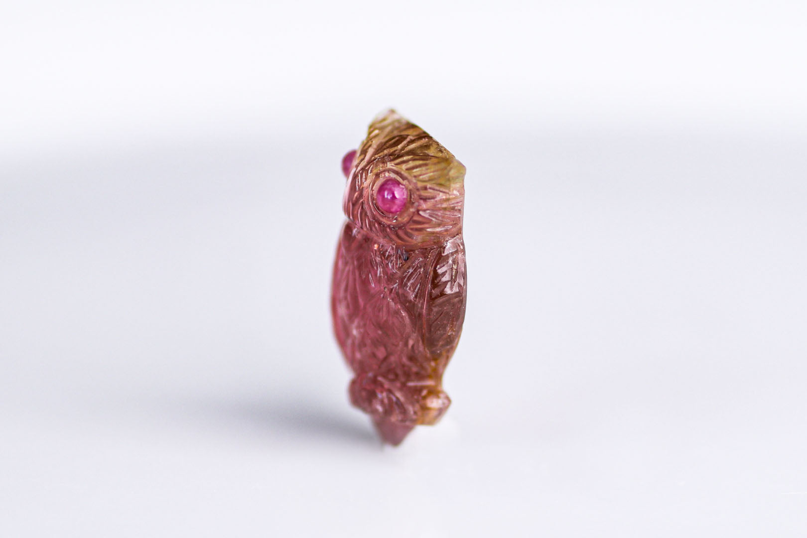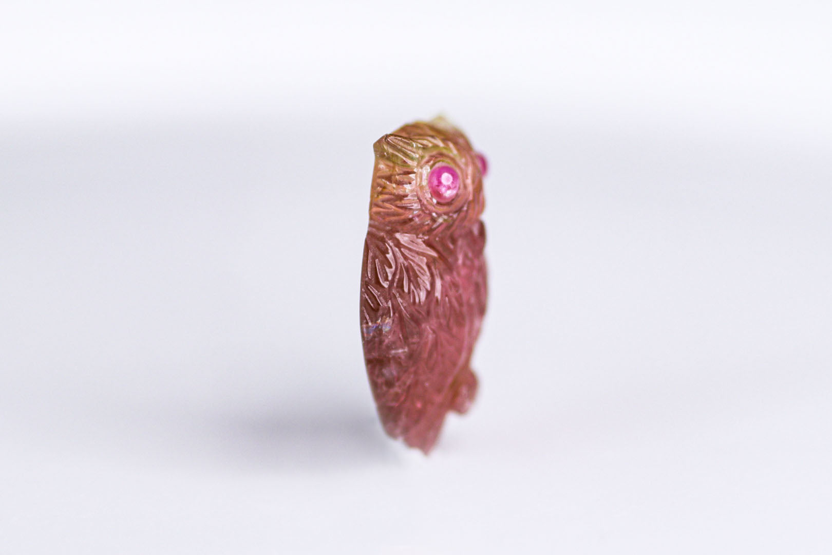 天然トルマリン グリーンピンクグラデーション フクロウ
