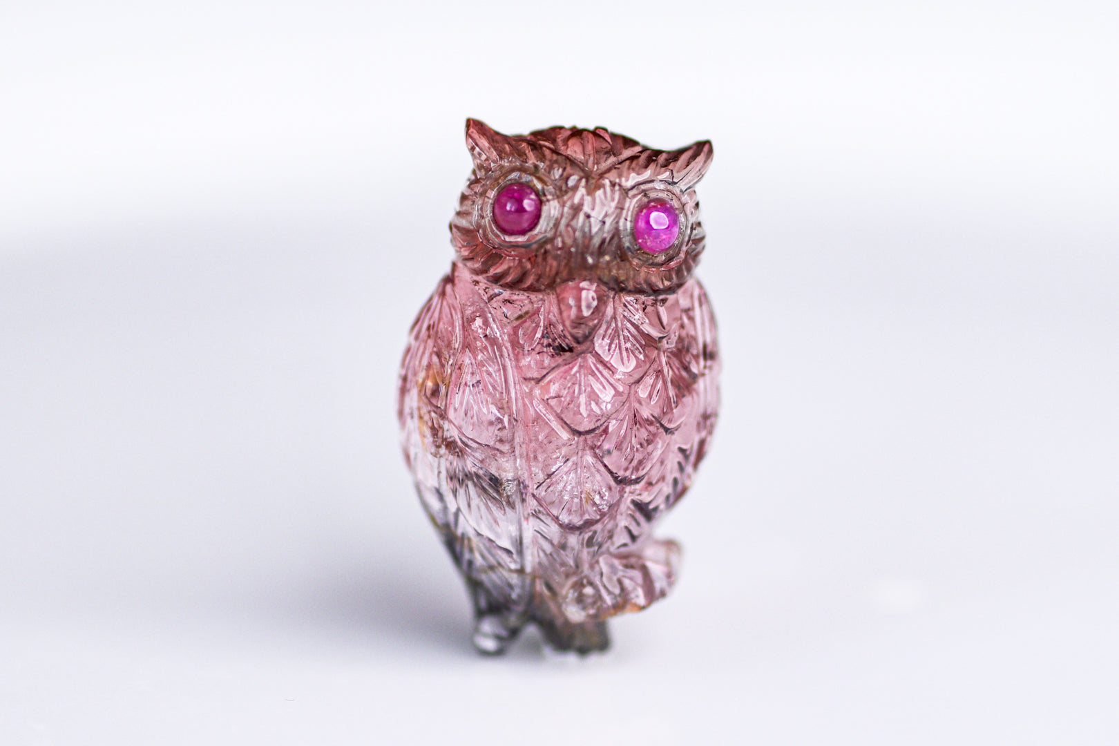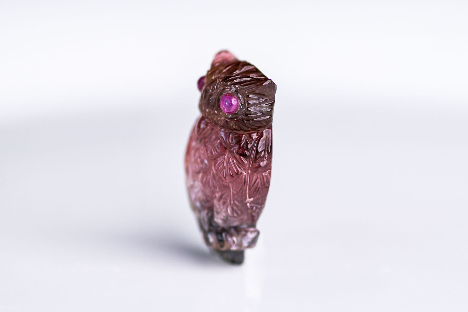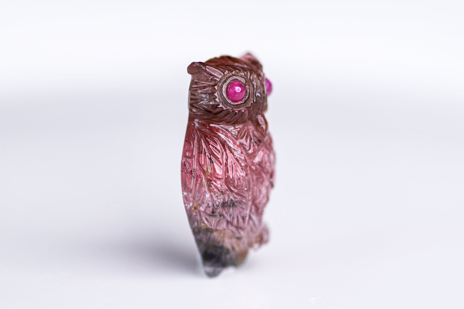 天然トルマリン ピンクグリーングラデーション フクロウ