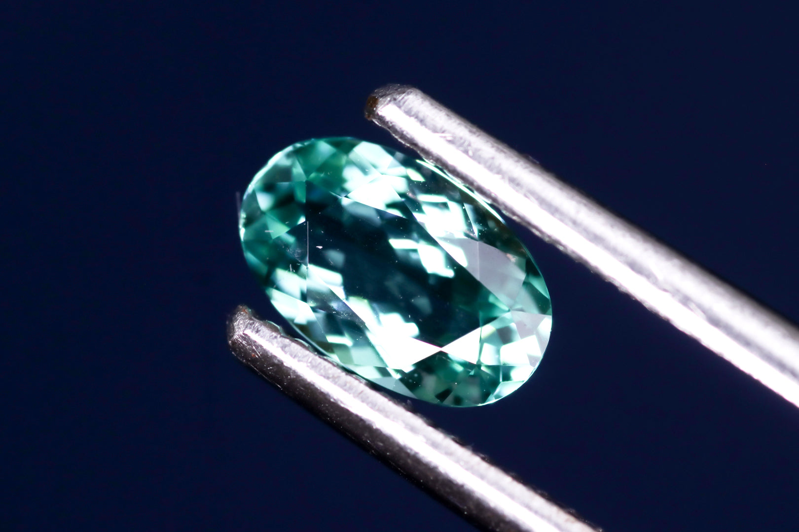 今回ご紹介するのは、すっきりとした細長いオーバルシェイプにカットされた一石。この涼しげなカラーがより引き立つデザインとなっており、高い透明度を誇ります。そのため、ジュエリーにお仕立てするのはもちろん、ルースのままでも数年間眺めていても飽きることのない美しさを持っています。