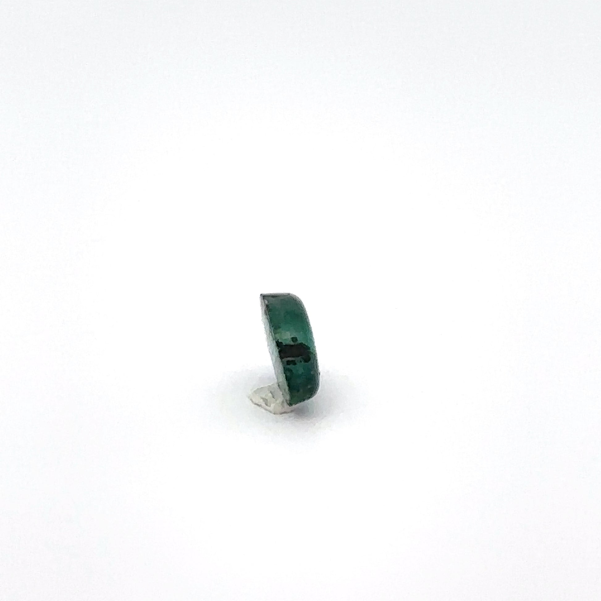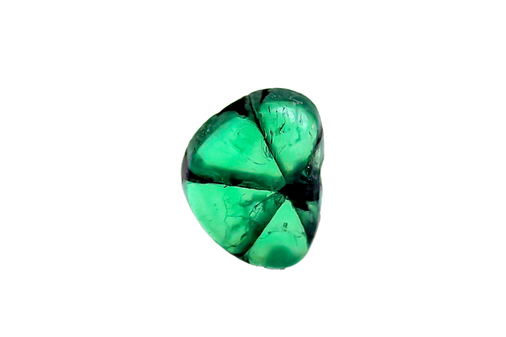 こちらは透明感のある緑色が美しく、コロンと丸みの帯びた三角形がかわいらしいルースです。